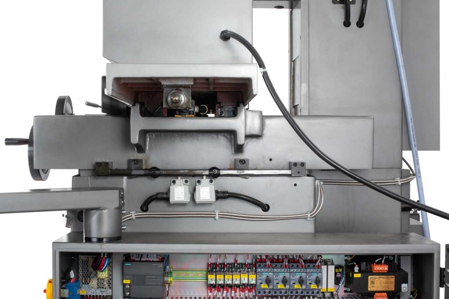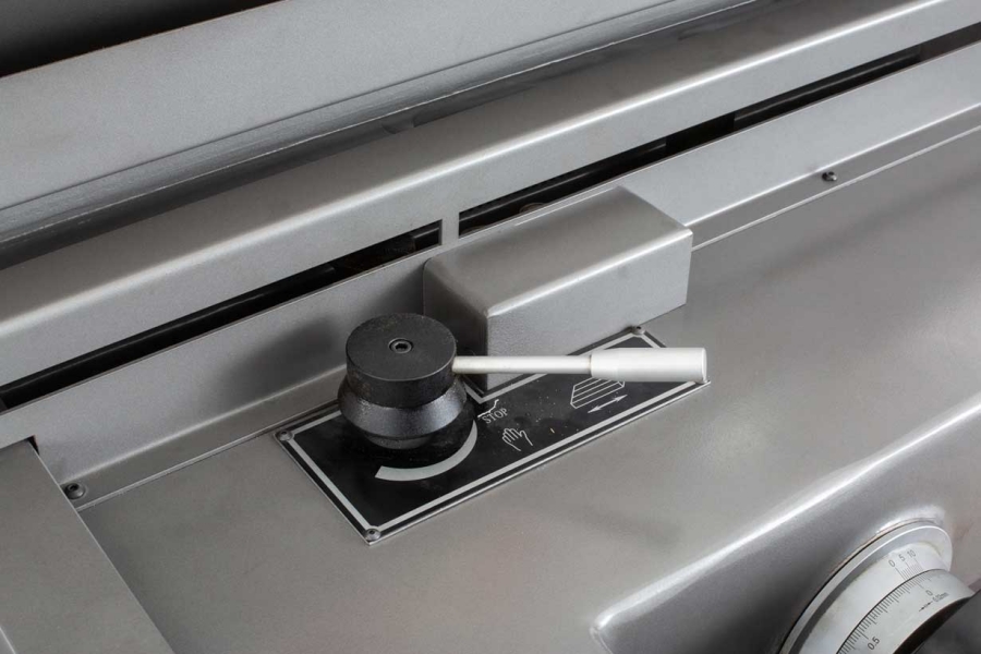 Стол приводится в движение вручную или через гидравлический привод (в правом или левом направлении), скорость плавно изменяется с помощью регулировочного рычага, расположенного на салазках. В поперечном направлении движение стола осуществляется вручную или двигателем через ходовой винт. Шлифовальная голова перемещается вручную маховиком или в автоматическом режиме с помощью серво-двигателя с подачей в диапазоне 0,005 до 0,05мм.