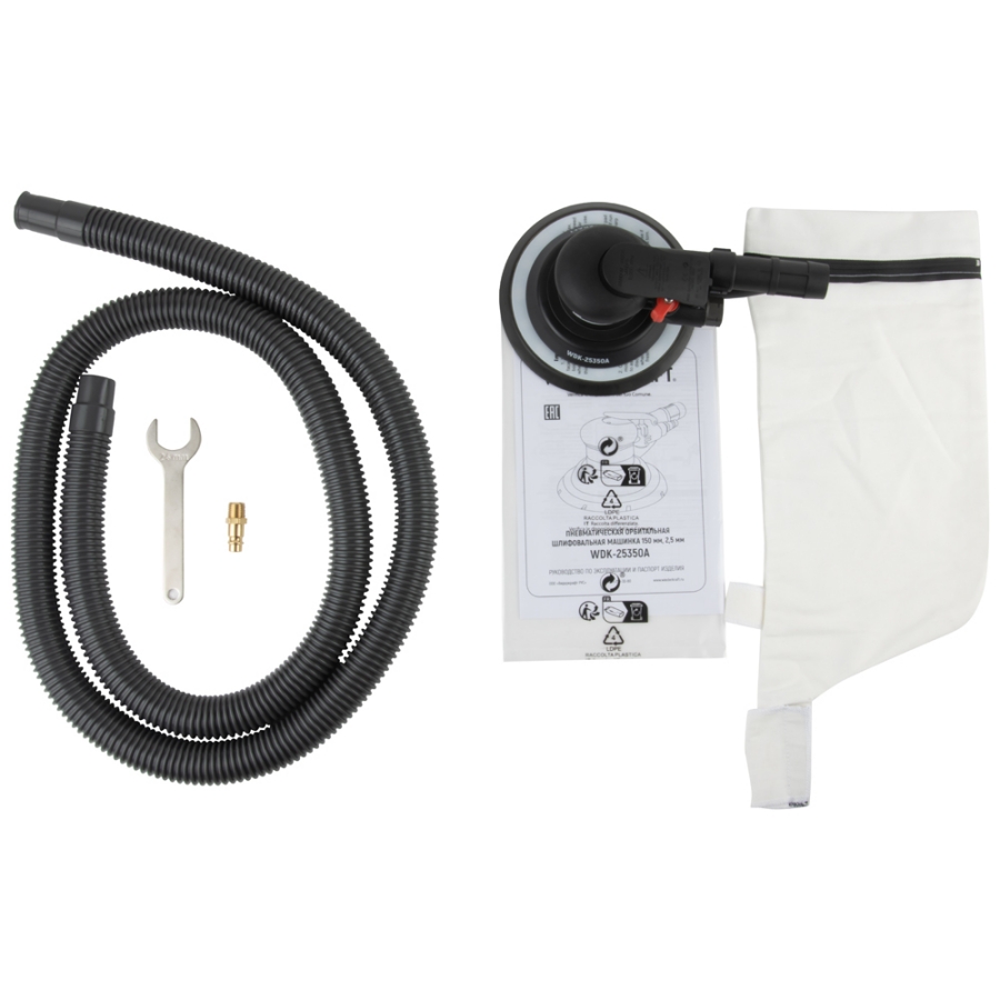 Пневматическая орбитальная шлифовальная машина WDK-25350A с ходом эксцентрика 2,5 мм применяется для шлифования древесины, лакокрасочных материалов, шпаклевочной массы и др.