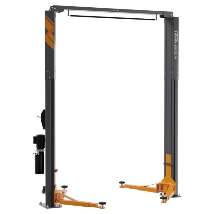 Двухстоечный подъемник с верхней синхронизацией WiederKraft WDK-526 грузоподъемностью 4200 кг. Отличается высокой надежностью конструкции: усиленные подъемные лапы, колонны US-TYPE, направляющие каретки из запатентованного полимера, стальные шкивы (сталь 45), уплотнители Hallite (Великобритания), толщина металла 5 мм, защитные шторки на внутренней части колонн. Подъемник имеет асимметричную конструкцию 30°, что обеспечивает удобство при посадке/высадке из автомобиля. Регулировка высоты подъемника от 3900 мм до 4100 мм позволяет установить подъемник в помещениях с ограниченной высотой потолков. S-образный профиль колонн американского типа позволяет выдерживать большие нагрузки и обеспечивает повышенную жесткость и устойчивость конструкции подъемника, в отличие от подъемников со стандартным профилем. Управление стопорами с одной колонны экономит время при спуске автомобиля. Наличие концевого ограничителя подъема обеспечивает дополнительную безопасность во время эксплуатации подъемника. Электро- и гидропроводка проложена в штатных защитных кожухах, все подвижные части внутри колонн закрыты специальной шторкой, защищающей узлы и проводку подъемника от грязи.