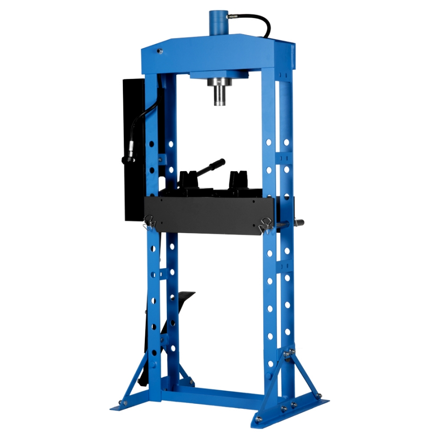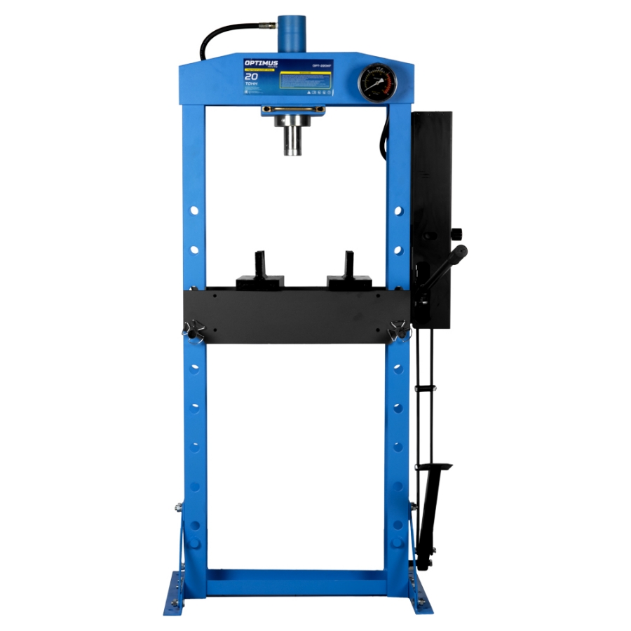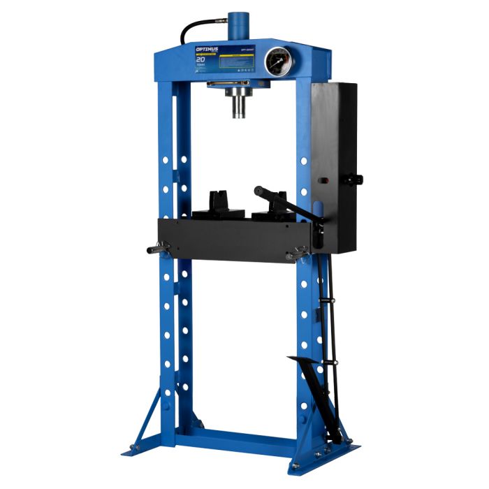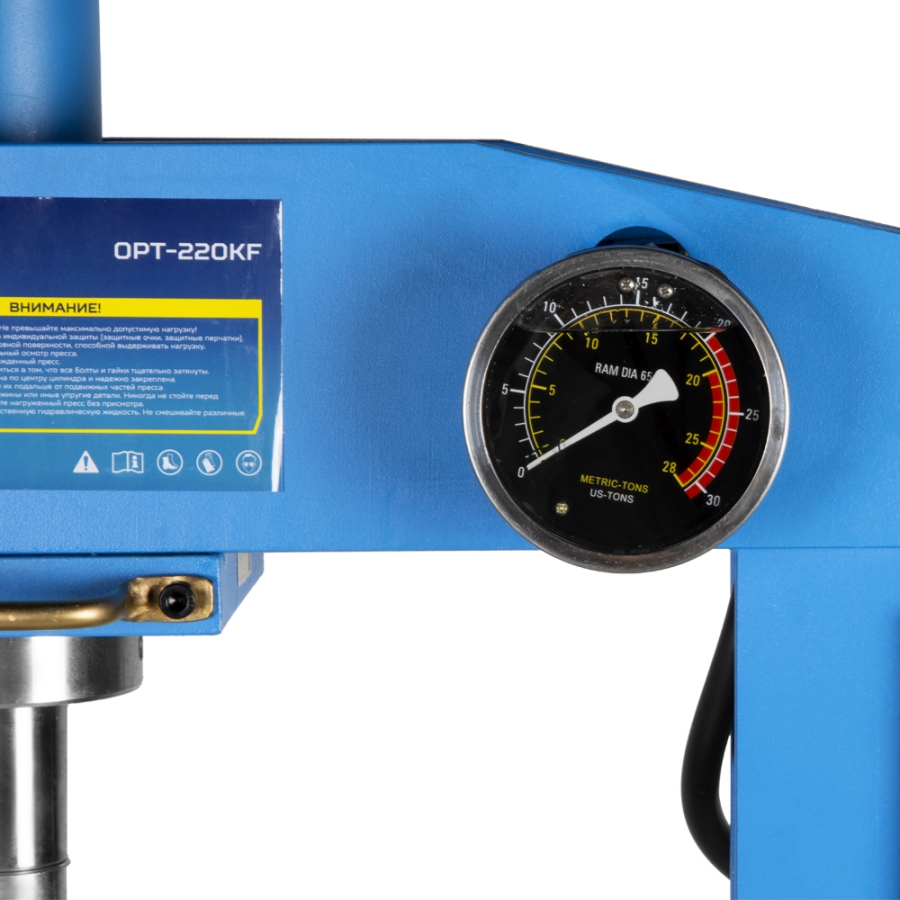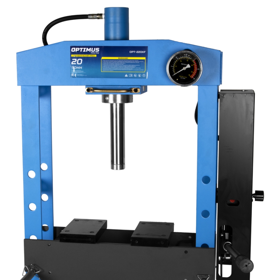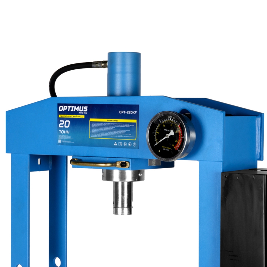 Напольный пневмогидравлический пресс OPTIMUS OPT-220KF, который обеспечивает усилие в 20000 кг. Оснащен современной гидравлической системой, включающей мощный цилиндр и насос с ножным приводом, что значительно снижает нагрузку на оператора и повышает удобство работы. Пресс приводится в действие как вручную (с помощью рычага), так и ножной педалью, что ускоряет процесс работы. Поперечные пластины основания обеспечивают устойчивость, а отверстия в стойках позволяет легко регулировать высоту стола под конкретные задачи. Пресс OPT-220KF предназначен для широкого спектра ремонтно-монтажных и производственных операций, включая: запрессовку подшипников, валов, втулок, правку валов, осей и профилей, штамповку, вырубку, резку; контроль допустимой нагрузки и надежности сварочных швов, а также установку оборудования контроля прочности материалов и т. д.