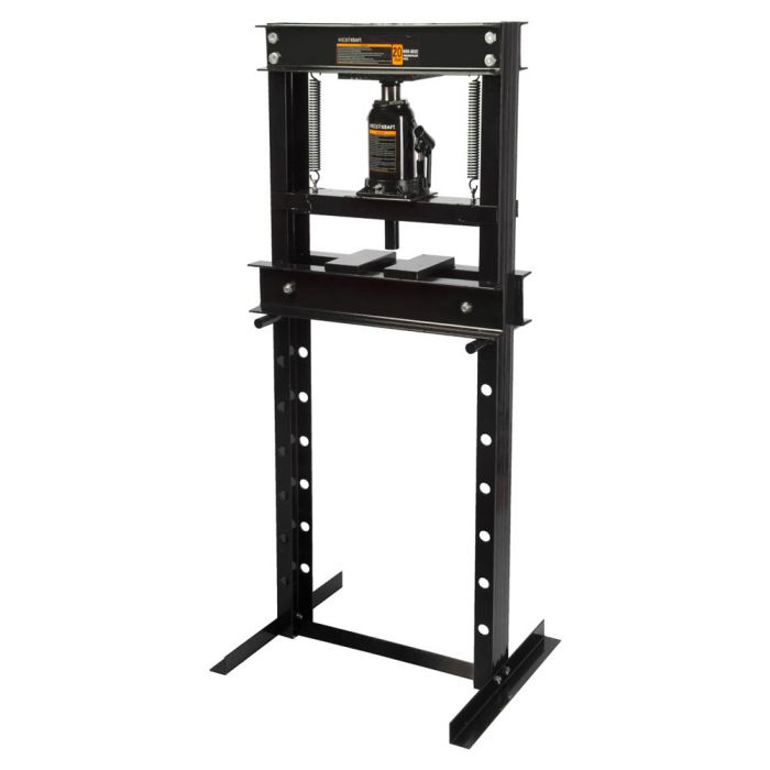 Напольный гидравлический пресс с бутылочным домкратом WiederKraft WDK-80121, который обеспечивает усилие в 20000 кг. Гидравлический напольный пресс применяется в автосервисах, СТО, ремонтных мастерских и на производственных предприятиях для установки и съема деталей автомобиля и других транспортных средств, а также для аккуратной правки, гибки и запрессовки заготовок. Силовым элементом конструкции является гидравлический бутылочный домкрат, который приводится в действие при помощи рукояти. Устойчивое положение модели обеспечивается благодаря поперечным пластинам основания. Отверстия стоек позволяют с легкостью менять высоту стола (рабочий диапазон составляет 0-910 мм).