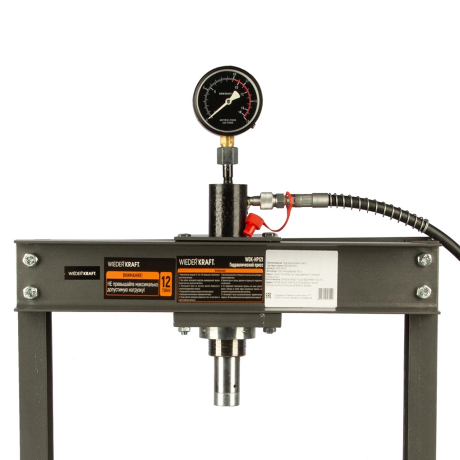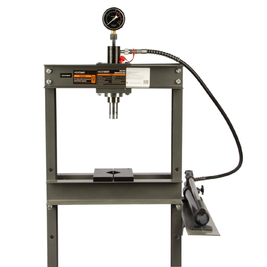 Напольный гидравлический пресс WiederKraft WDK-HP121, который обеспечивает усилие в 12000 кг. Предназначен для запрессовки или выпрессовки втулок, коленвала, снятия или установки подшипников для автомобиля, сжатия всевозможных деталей, для гибки арматуры или листового металла. Поставляется с ручным приводом и не требует подключения к электросети. Для контроля над давлением предусмотрен манометр с четкой и легко читаемой шкалой. Он располагается в верхней части станка – на уровне глаз пользователя. Манометр заполнен компенсирующей жидкостью, что обеспечивает устойчивость к колебаниям давления в системе. Пресс имеет небольшую массу и компактные размеры, именно поэтому его можно использовать даже в небольших ремонтных помещениях. Широкое Н-образное основание исключает раскачивание и падение пресса.