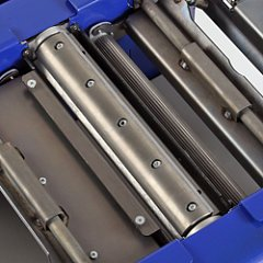 Протяжные валы - стальные, что позволяет уверенно и надежно продвигать заготовку при рейсмусовании, при этом, после обработки не остается следов. Валы установлены в втулки скольжения из специального высокопрочного помпластика, который имеет низкий коэффициент трения и длительный срок службы.