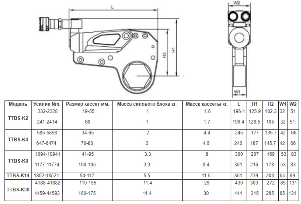 Товар: Гайковерт гидравлический кассетный TTBS-K14 ATW 18521 Нм, под гайку 105, 100, 95, 90, 85, 80 мм