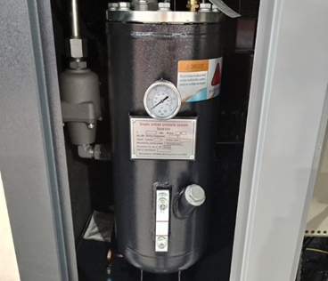 Система сепарации. Трехступенчатая система сепарации в вертикально расположенном маслобаке снижает остаточное содержание масла в сжатом воздухе до 3 мг/м3. Инженерами предусмотрено смотровое окно для проверки уровня масла, а также удобно расположенный кран слива масла из маслобака (не требуется специальных приспособлений) обеспечивает удобство при регламентном техническом обслуживании.