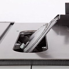Станок оснащен основным рабочим столом и двумя дополнительными секциями из чугуна. Стол имеет два стандартных паза для установки углового упора или дополнительных приспособлений.