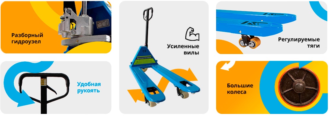 Регулируемые тяги — позволяют быстро корректировать высоту вил под тип паллеты или задачу.