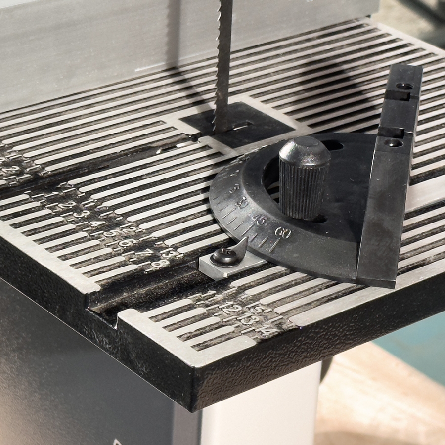 На станке без проблем можно резать под углом, для этого предусмотрен специальный поворотный упор. Также пила оснащена передвижной направляющей, с помощью которой можно регулировать угол распила, контролировать точность размера и движение полотна.