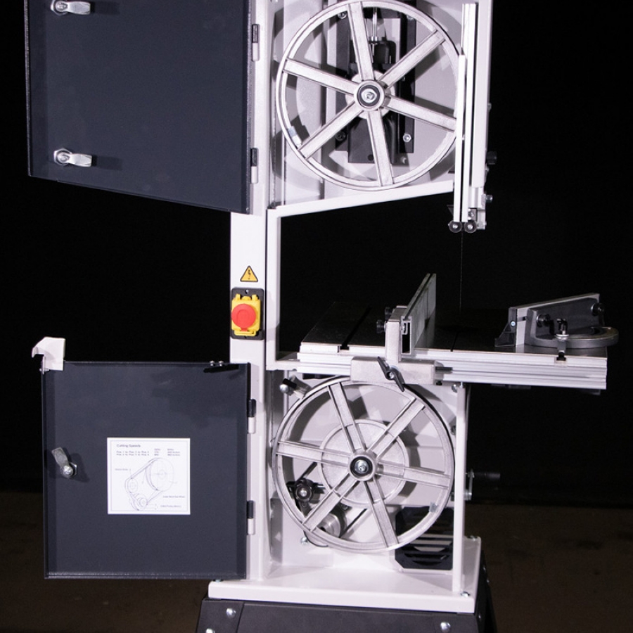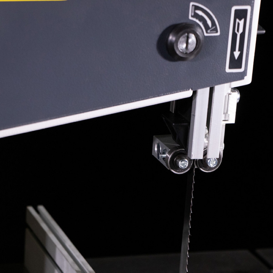 Ленточная пила по дереву PROMA PP-312 - компактный пильный станок для резки заготовок из дерева и пластика. Направляющие надежно держат полотно в вертикальном положении. Опорный стол можно наклонить, угол наклона от0 до 45 градусов. Станок оснащен параллельным упором для точного параллельного распила, а также передвижной угловой упор с транспортиром на направляющей планке для реза заготовки под заданным углом. Станок комплектуется надежным асинхронным двигателем. Привод от двигателя осуществляется посредством ремня. Станок комплектуется сборным основанием. Для комфортной работы пила оборудована патрубком для подсоединения стружкосборника.