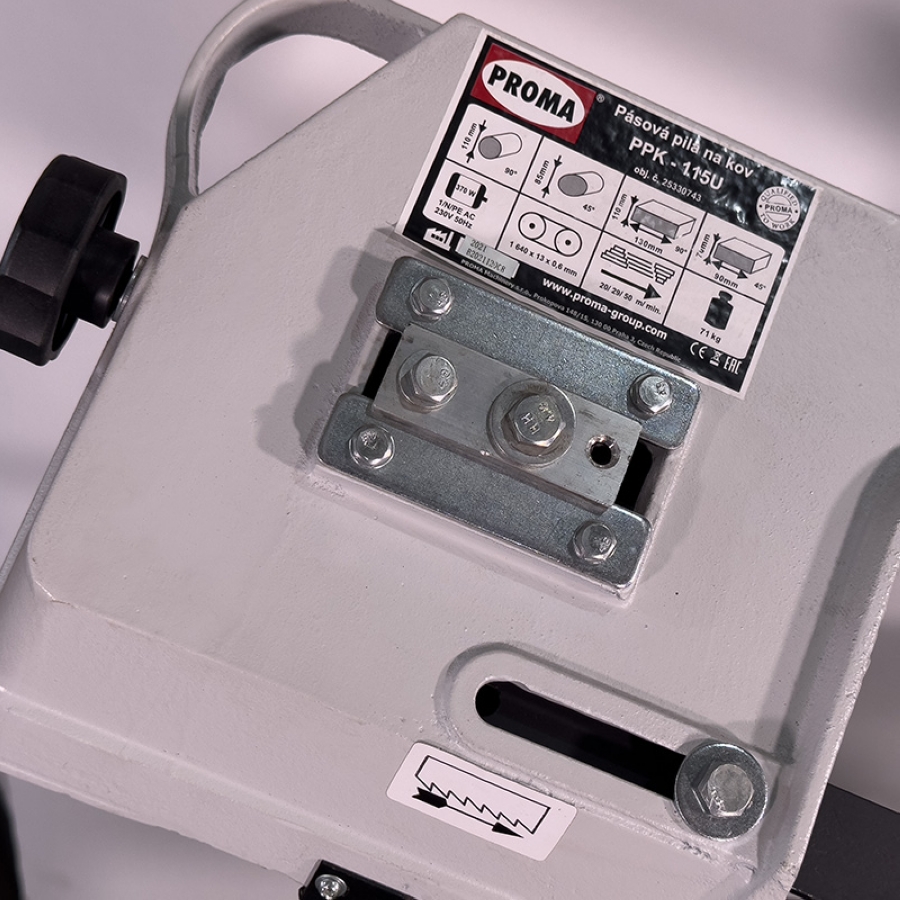 PROMA PPK-115U - ленточная пила по металлу небольшого размера. Ленточно-пильные станки по металлу используются для резки заготовок из алюминия, цветных металлов, стали, легированной стали, сплавов, а также пластмасс. Ленточная пила по металлу отличается высокой производительностью. Корпус станка изготовлен из литого чугуна. Предусмотрен поворот пильного узла для резки под углам. Заготовка фиксируется в регулируемых быстрозажимных тисках под нужным углом. Станок укомплектован дополнительным столом для работы в вертикальном положении. Скорость ножовочного полотна регулируется.