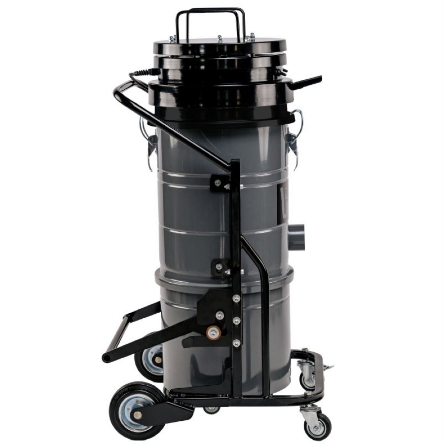 Сбор мусора происходит сразу в бак объемом 30 литров без дополнительных расходников в виде мешков. Простая и удобная лифт-система позволяет быстро снимать и устанавливать бак-пылесборник на место. А три маневренных колеса дают возможность легко и удобно перемещать бак пылесоса к мусорным контейнерам или по территории строительной площадки.