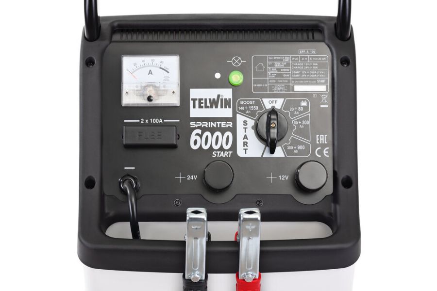 Пуско-зарядное устройство SPRINTER 6000 START 230V 12-24V предназначено для зарядки и поддержания заряда аккумуляторов и пусковое устройство (стартер) аккумуляторов со свободным электролитом (WET) с напряжениями 12/24 В. легковых автомобилей, фургонов, тракторов, лодок и легких грузовых автомобилей.