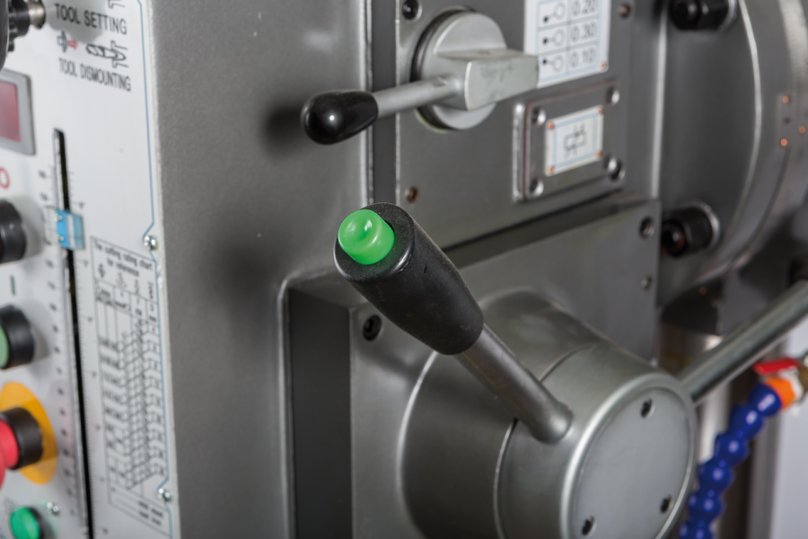 - Изменение направления вращения шпинделя с помощью электромагнитной муфты кнопкой в рукоятках подачи