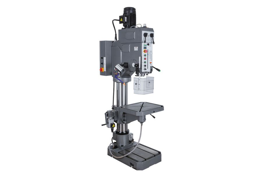 Мощный, надежный редукторный сверлильный станок для тяжелых работ с максимальным диаметром сверления до 50мм и диаметром нарезания резьбы до М30. Имеет функции автоматической подачи, режим резьбонарезания, возможность поворота рабочего стола и вращения во круг колонны, механизированного перемещения стола по вертикали и встроенной системы СОЖ.