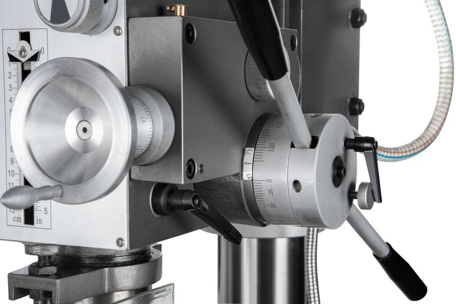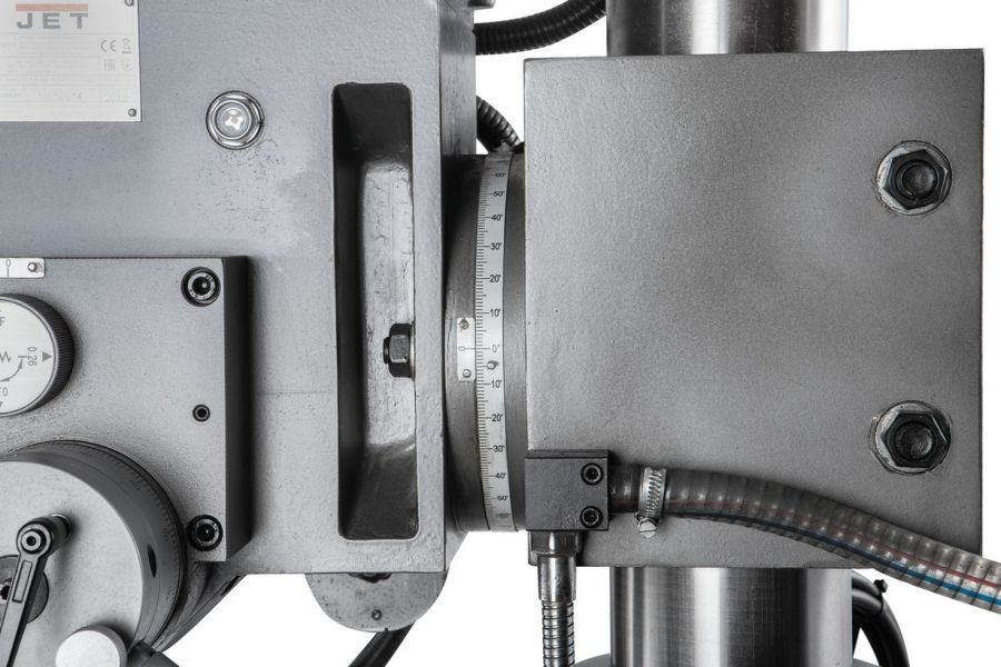 Наклон сверлильной головки вправо/влево на 90 градусов и ее поворот вокруг колонны на 360 градусов, а также большое расстояние от шпинделя до основания в 1180мм обеспечит Вам возможность обработки большого диапазона обрабатываемых деталей. Редукторный вертикально-сверлильный станок JET JMD-40PFCT с крестовым столом отлично впишется в Ваше производство, а гарантия на станок будет приятным дополнением к тому, чтобы работать и не бояться о поломке станка.