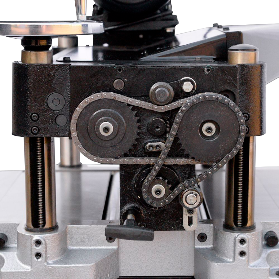Стол быстро и точно регулируется маховиком через жёсткий редукторный привод