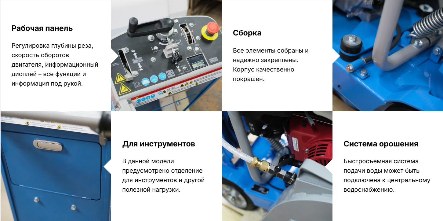 Диаметр алмазного диск.: 500 мм. Максимальная глубина реза: 185 мм Мощность: 13,0 л.с. Тип двигателя: бензиновый