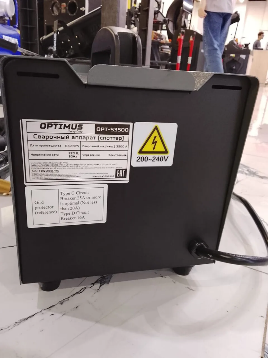 Максимальный сварочный ток: 3500 А Напряжение питания: 220 В
