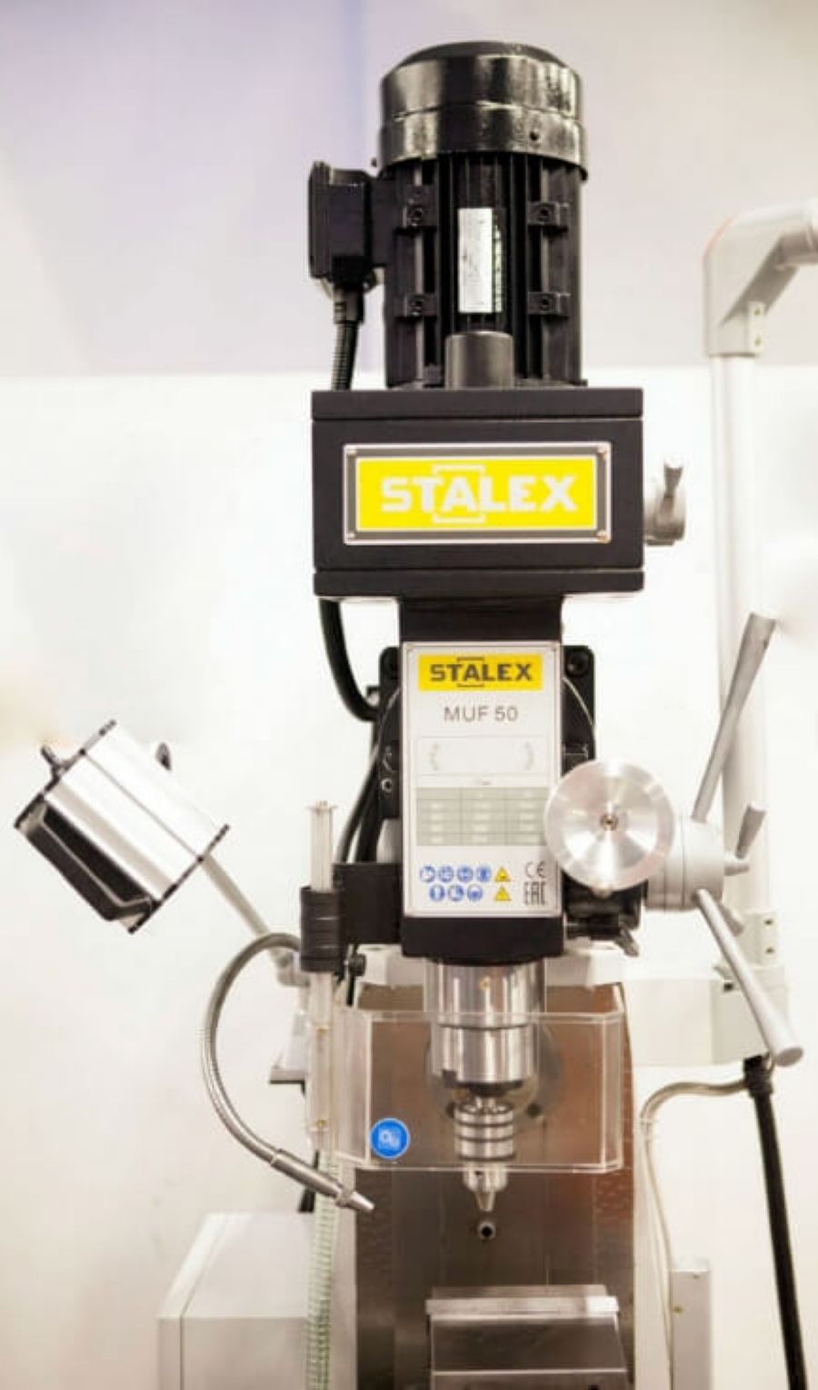 Универсально-фрезерный станок STALEX MUF50 - предназначается для осуществления всевозможных фрезерных работ. Обработка может производиться при помощи различных фрез: дисковых, цилиндрических, фасонных, модульных, торцевых, червячных и других. При помощи станка MUF50 можно производить обработку различных плоскостей, зубчатых колес, канавок, а также растачивать отверстия в деталях из чугуна, стали, пластмассы, цветных металлов. Быстрота переналадки инструмента, а также простота обслуживания станка в целом делают станок незаменимым в мелкосерийном производстве.