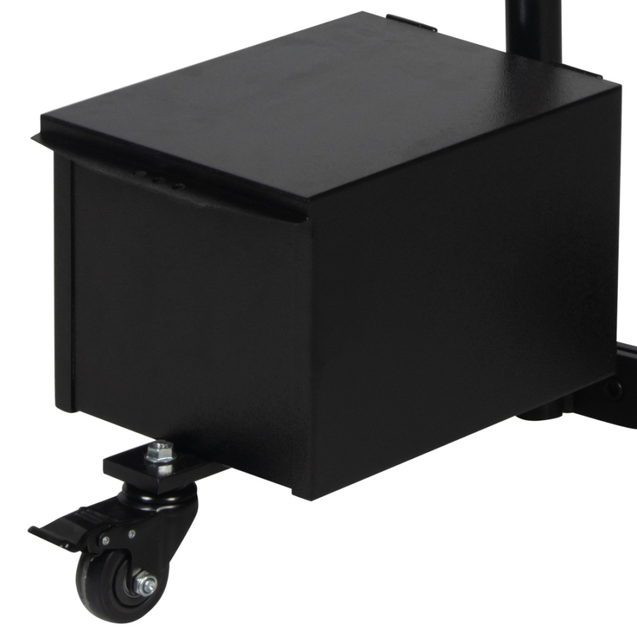 Оснащен транспортировочным шасси и ящиком для хранения аксессуаров;