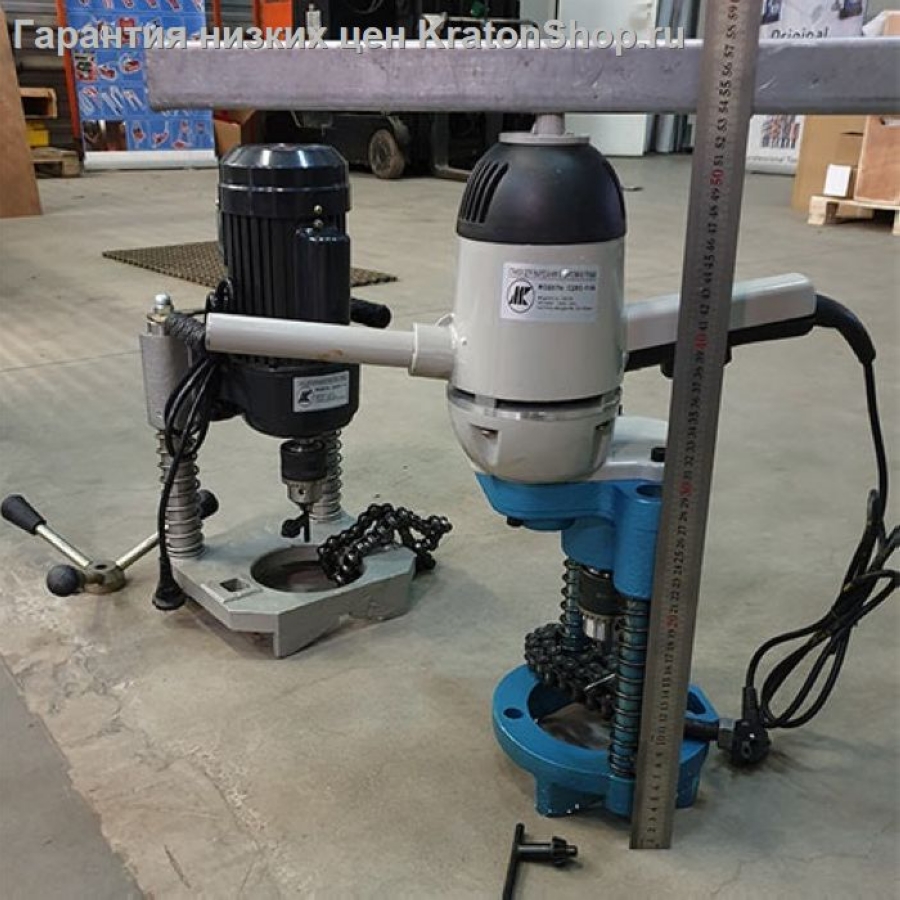 Сверлильный станок СДВО-114А предназначен для быстрого вырезания отверстий диаметром до 114 мм в стальных трубах до 8". Диаметр хвостовика сверла от 3 до 16 мм. Фиксация станка на трубе осуществляется цепным механизмом. Частота вращения шпинделя 300 об/мин обеспечивает оптимальную долговечность врезных коронок большого диаметра.