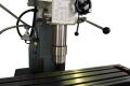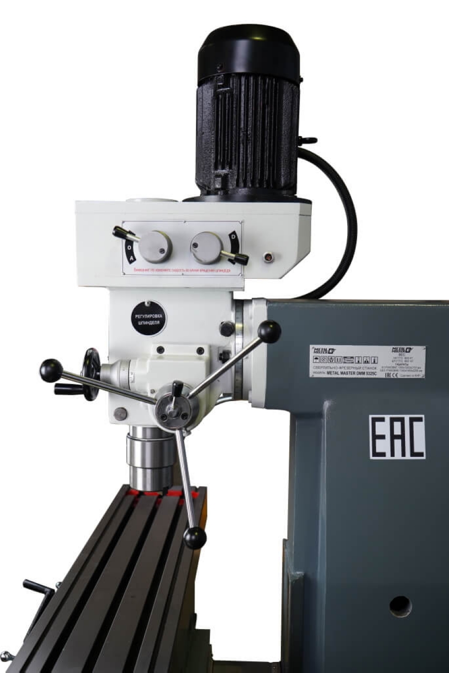 Универсальный сверлильно-фрезерный станок по металлу MetalMaster DMM 5325C обрабатывает заготовочные детали, изготовленные из металла либо иных материалов благодаря резке фрезой. Станочная конструкция мощная и жесткая. В ее состав входят мобильная фрезерная головка, направляющие, мобильный рабочий стол, тумба основания. Управление вращением шпинделя производится с панели управления, расположенной на фрезерной головке. С панели управления задается направление и скорость вращения шпинделя. Рукоятки переключения передачи расположены сбоку. Таблица выбора скоростей расположена прямо на фронтальной части фрезерной головки. Станок оснащен массивным столом размером 1270х255 мм с Т-образными пазами и возможностью регулировки подъема и опускания по оси Z. Угол поворота стола составляет ±45?.