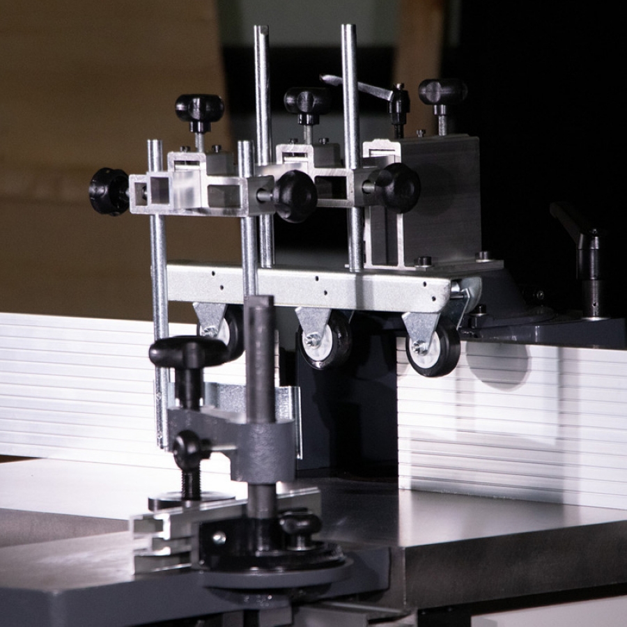 Cтанок PROMA TFS-90/30 - предназначен для обработки заготовок из дерева, фанеры, ДСП посредством фрезерования. Станок для промышленного использования, режим работы продолжительный, до 8 часов непрерывной работы. Питание станка трехфазное 380 V, привод шкива - ременной. Фрезерный станок имеет основание из листового металла, а рабочий стол изготовлен из чугуна, что делает стол более устойчивым в работе. Из чугуна изготовлен и малый стол со струбцынами, который перемещается на направляющей. В основании отверстия для крепления к полу. Станок оборудован патрубком для подключения пылесоса.