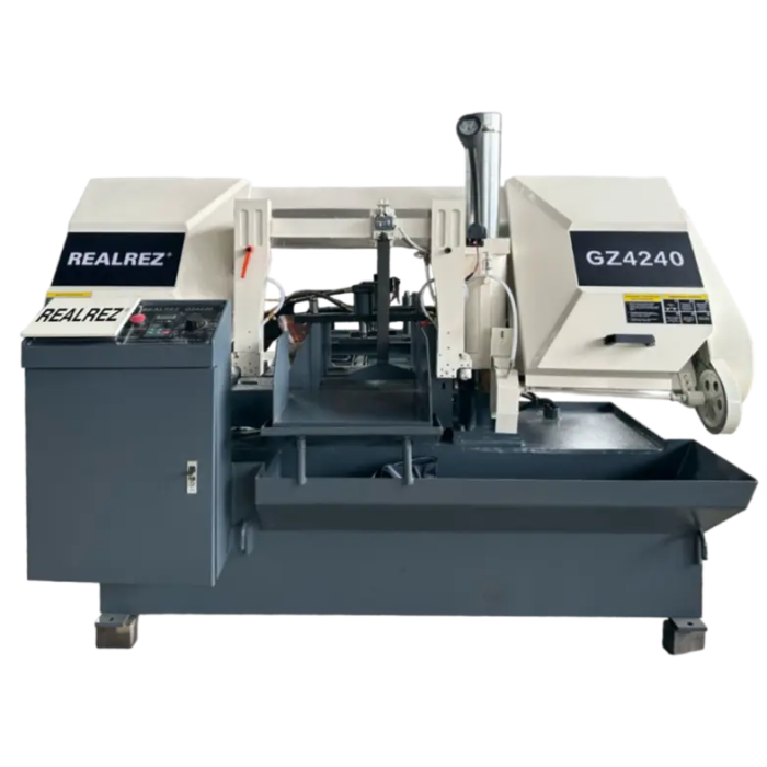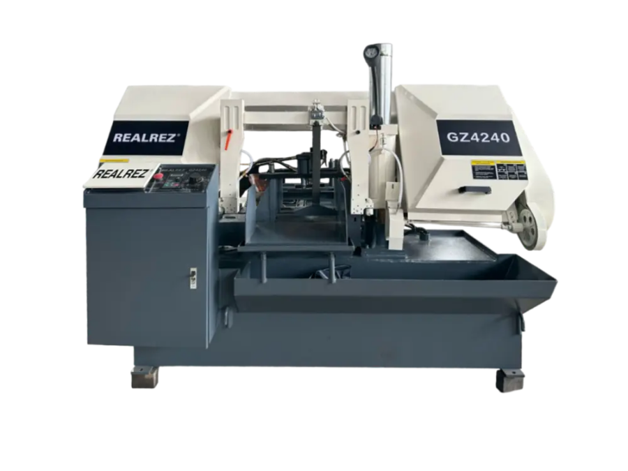 Станок ленточнопильный автоматический REALREZ GZ4240 предназначен для резки труб, профилей и сплошных заготовок из различных материалов под углом 90 градусов. Подача материала за счет двойный тисков. Станок оборудован верхним прижимом для резки заготовок пакетом