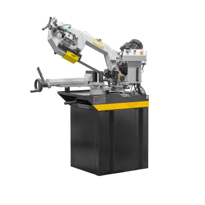На станках с гидроразгрузкой управление и процесс резки (запуск пилы – опускание рамы – остановка пилы) происходит за счёт запуска двигателя и регулировки гидроцилиндра. Подъём рамы осуществляется оператором вручную. Станок Stalex BSM-225GV позволяет делать распилы заготовок диаметром до 225мм. В рабочей зоне резания полотно точно ведется двумя направляющими головками. Станок европейского образца с возможностью поворота корпуса пилы от 0° до +60°, предназначен для пиления заготовок, под различными углами и при частой смене угла пила. Полотно натягивается с помощью натяжного шкива. Натяжной шкив приводится в движение приводным шкивом, который в свою очередь, приводится через редуктор. Рама станка опускается под собственным весом, станок оборудован дросселируемым гидравлическим цилиндром, который позволяет автоматически подстраивать скорость опускания пильной рамы в зависимости от профиля заготовки и обеспечивающий оптимальные режимы распила. Модель имеет быстрорегулируемые тиски для резки под углом, поворачивается рама, а не заготовка. Тиски с системой быстрого отвода ускоряют процесс смены заготовки (ускоренный отвод подвижной губки происходит без вращения маховика). Зажим заготовки осуществляется тисками вручную, подача заготовки - также вручную. Наличие системы СОЖ в стандартной комплектации – позволяет добиться высокой производительности.