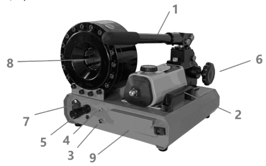Станок состоит из корпуса, обжимной головы и ручного насоса и поставляется готовым к использованию. Упакован станок в деревянный ящик на паллете. Станок HRH-P16HP сконструирован специально для соединения с помощью системы опрессовки металлических фитингов с гидравлическими рукавами высокого или низкого давления до 1". Любое другое применение станка считается ненадлежащим, и в таком случае производитель, а также его представитель, не несут ответственности за травмы, нанесенные людям, или ущерб, причиненный имуществу или самому станку. Станок должен использоваться только для обжима гидравлических рукавов с соблюдением перечисленных мер предосторожности. Необходимо соблюдать условия эксплуатации, описанные в руководстве, а также правила охраны труда и технику безопасности.