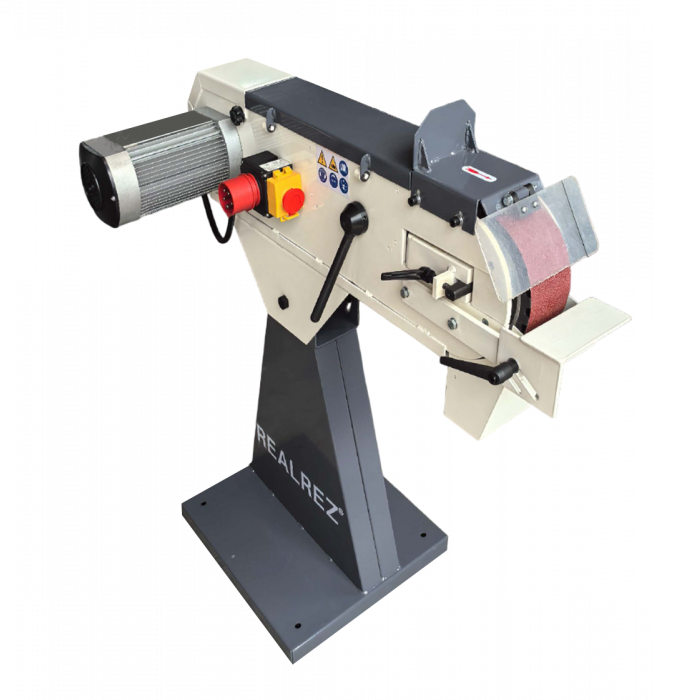 Универсальный ленточный шлифовальный станок Realrez B1-S5С для финальной обработки заготовок, неровных поверхностей и краев, позволяет избавиться от заусениц и отшлифовать сварочные швы. Данное оборудование используется на металлообрабатывающем и деревообрабатывающем производстве, в ремонтных мастерских и автосервисах. При использовании правильно подобранной абразивной ленты станок также подходит для шлифовки изделий из пластмасс.