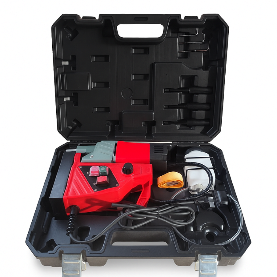 MAG Drill 40 — оптимальное решение для мастерских, монтажных бригад и промышленного применения. Способен выполнять сверление корончатыми и спиральными свёрлами диаметром до 40 мм — идеально для металлоконструкций, труб и листового металла.