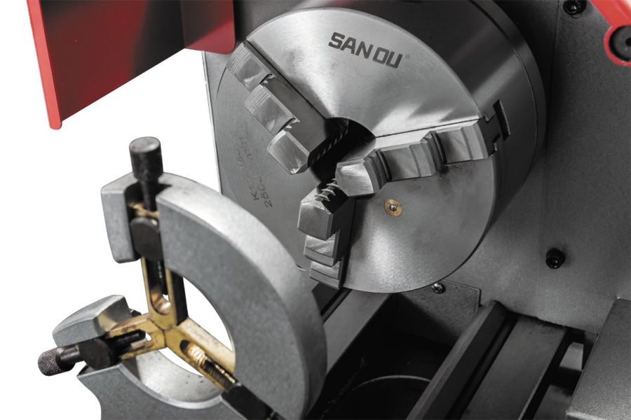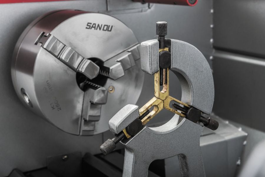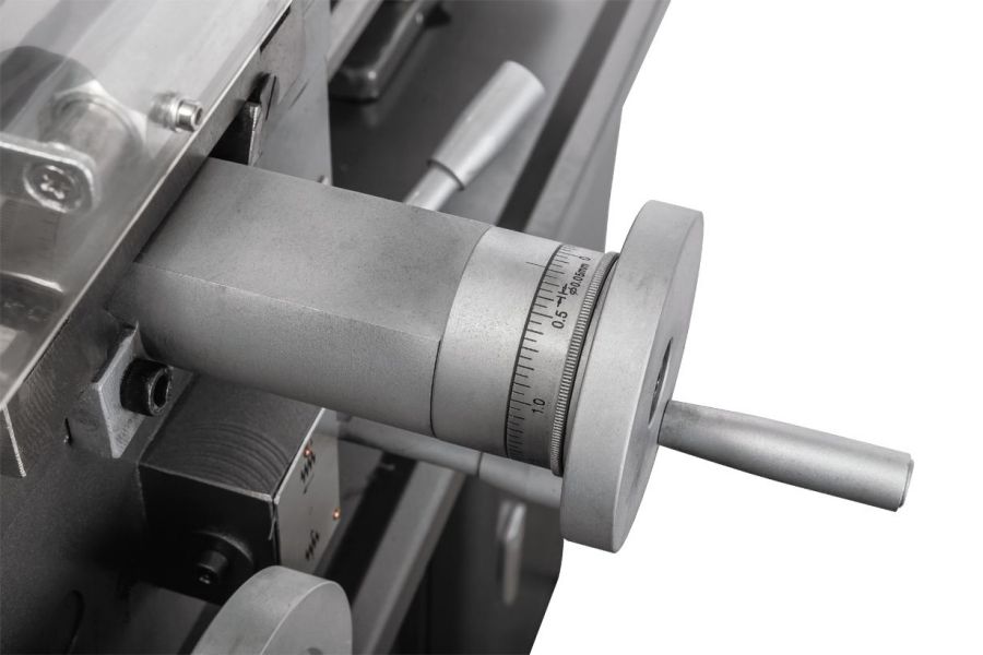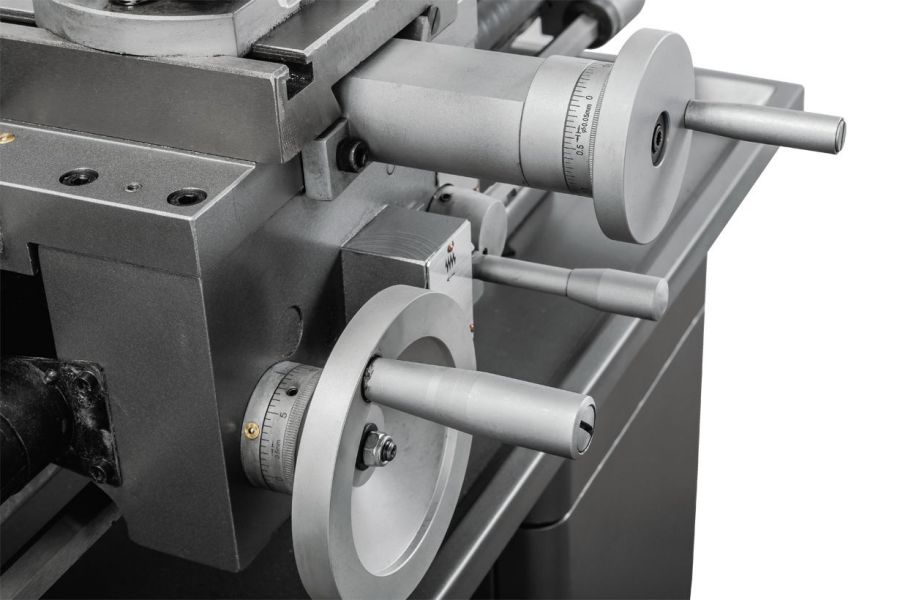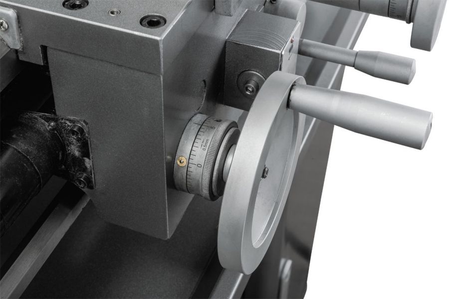 - Массивная задняя бабка с регулировкой смещения для обточки конусов и рычагом быстрой фиксации