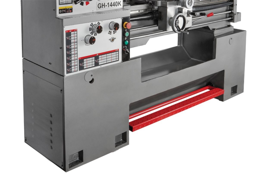 Расстояние между центрами - 1000 мм. JET GH-1440К устанавливается на массивную станину из чугуна, ее направляющие закалены токами высокой частоты и отшлифованы. JET GH-1440K имеет 40 типов продольных и поперечных подач в автоматическом режиме, а также позволяет нарезать метрические и дюймовые резьбы. Обороты шпинделя можно выбирать из 12 предустановленных режимов в диапазоне то 40 до 1800 об/мин.
