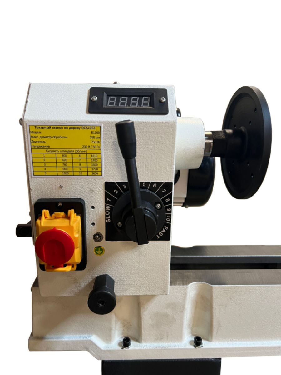 Токарный станок REALREZ R1100 применяется для обработки древесины c целью придания ей необходимых форм и размеров методом точения. На станке выполняют черновое и чистовое точение цилиндрических, конических, фасонных поверхностей и т. п. Заготовка получает вращение от шпинделя, скорость регулируется с помощью вариатора в диапазоне от 500 до 2000 об/мин. Станина, подручник и опоры изделия выполнены из высококачественного чугуна. Направляющие шлифуются с высокой точностью для обеспечения плавного хода подручника, передней и задней бабки.