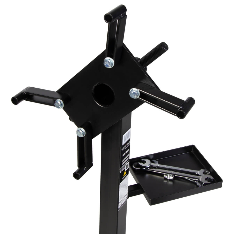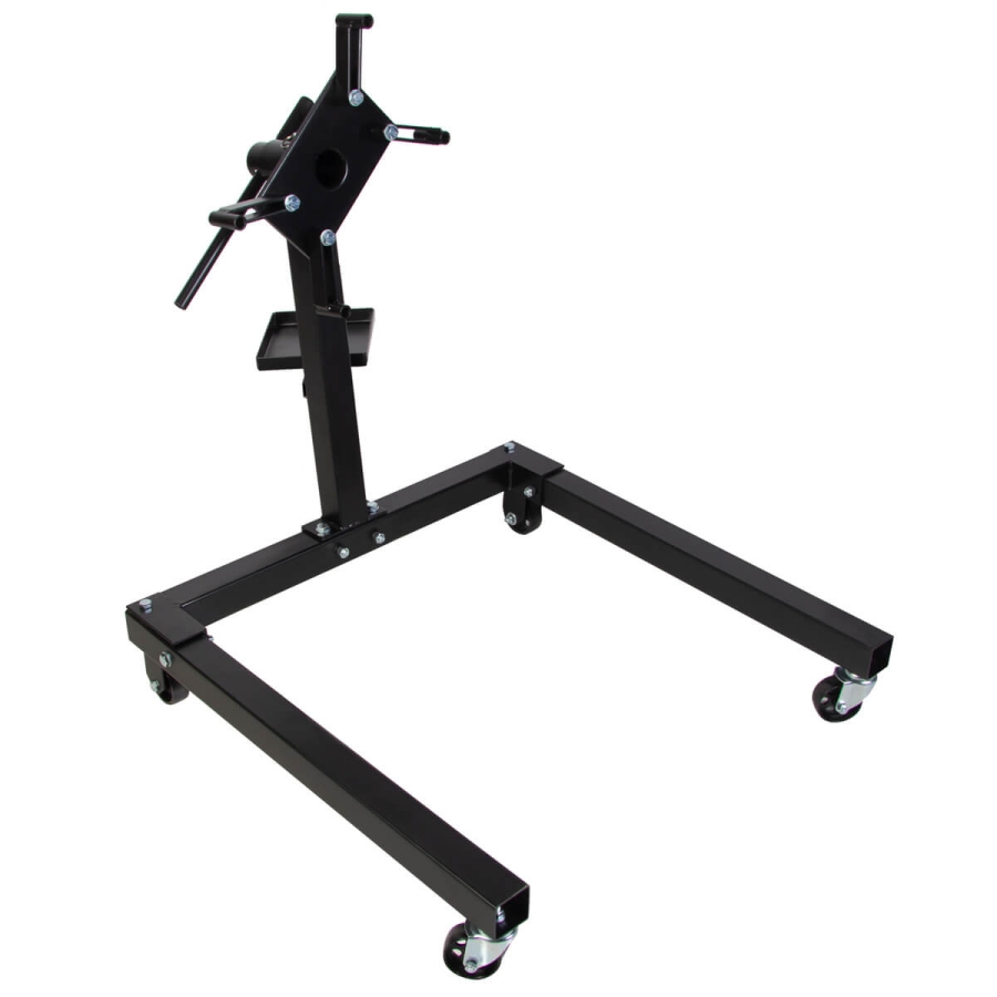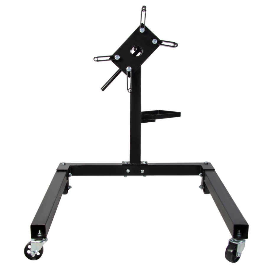 Предназначен для удобства разборки и сборки двигателей легковых автомобилей, имеет универсальные адаптеры, позволяющие установить любой двигатель, КПП, или другой узел весом до 770 кг. Стенд может перемещаться вместе с закрепленном на нем двигателем, благодаря наличию роликовых колес , которые в случае необходимости могут быть заблокированы. червячный редуктор позволяет повернуть и зафиксировать закрепленный на стенде двигатель или другой узел необходимым образом, для проведения ремонтных работ.