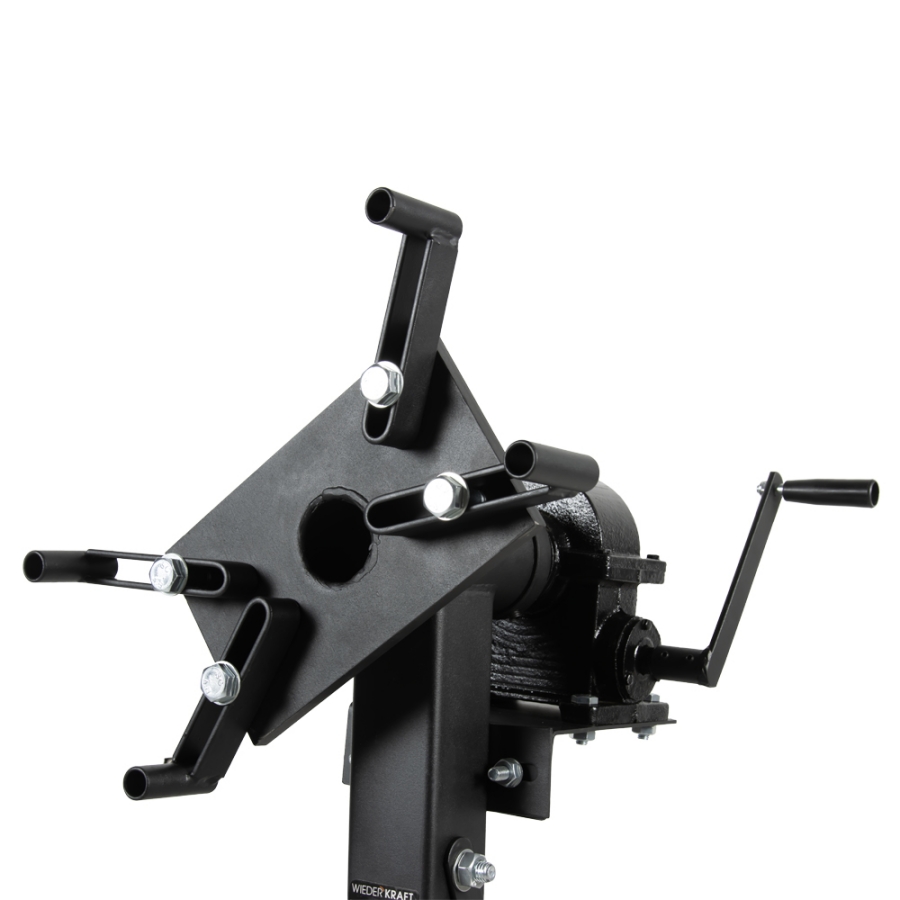 Кантователь двигателя с редуктором WiederKraft WDK-82685, который предназначен для сборки, разборки и технического обслуживания автомобильных двигателей. Оснащен самотормозящимся червячным редуктором, который значительно облегчает вращение агрегата и надежно фиксирует его в нужном положении. Прочная стальная конструкция выдерживает нагрузку до 900 кг, обеспечивая безопасность и удобство работы. Специальный механизм вращения с редуктором обеспечивает плавное безрывковое изменение угла вывешенного двигателя в диапазоне от 0° до 360° для более удобного доступа к нему. Конструкция кронштейнов допускает использование кантователя двигателя практически со всеми существующими типами двигателей. Кантователь модели WDK-82685 является незаменимым инструментом для профессионалов, позволяя быстро и безопасно выполнять замену, ремонт или обслуживание двигателя.