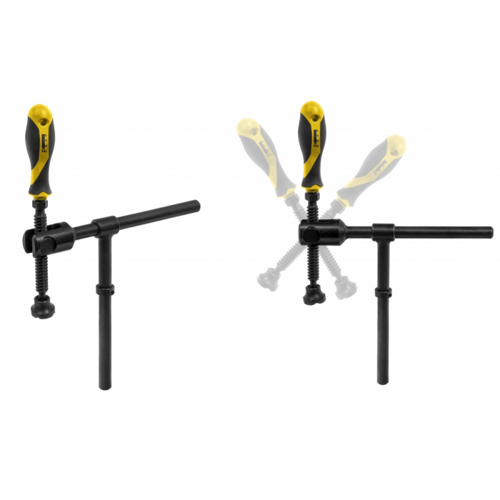 Струбцина универсальная КЕДР (для Д-16 EXPERT) предназначена для точной и надежной фиксации закрепляемых деталей, для фиксации в труднодоступных местах может использоваться только верхняя часть струбцины. Струбцина регулируется как по горизонтали, так и по вертикали. Рабочий винт имеет шарнирный узел крепления, что дает возможность менять угол фиксации до 45°, такая конструкция объединяет преимущества стандартных струбцин 90 град. и струбцин с углом 45 град. Рукоять струбцины имеет специальное прорезиненное и эргономичное покрытие. За счет применения воронения деталей струбцины гарантируется длительный срок службы.