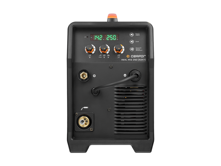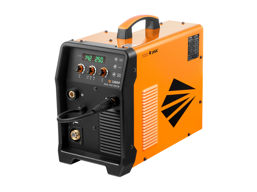- REAL MIG 250 (N2A7) — это мощный полуавтомат, работающий от сети 220 В, что делает его оптимальным решением для мастерских и производств без доступа к промышленной сети 380 В.