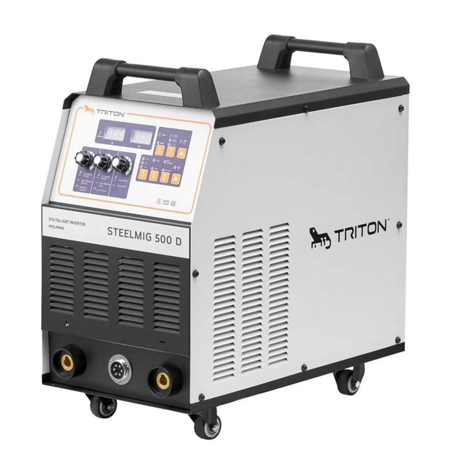 Сварочный полуавтомат TRITON STEELMIG 500 D предназначен для высококачественной полуавтоматической сварки конструкций из черных металлов. Он обеспечивает широкий диапазон сварочного тока до 500 А, как в режиме сварки в среде защитного газа (MIG/MAG), так и при ручной дуговой сварке штучными электродами (MMA). Это делает его универсальным и надежным помощником для решения промышленных сварочных задач.