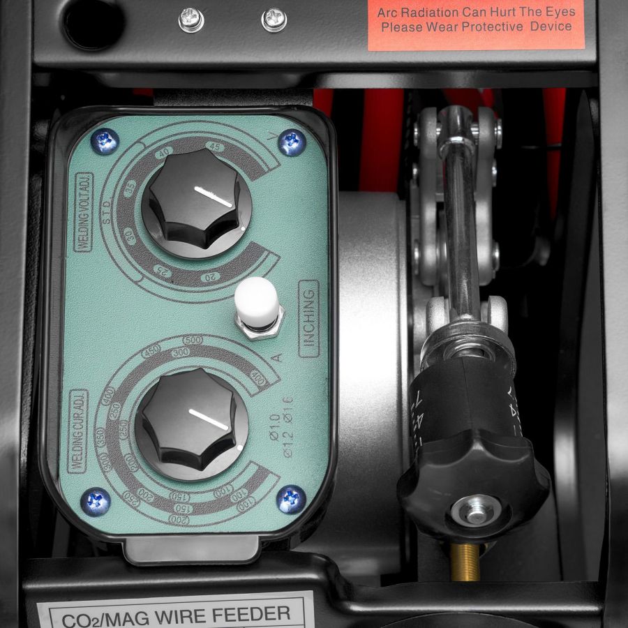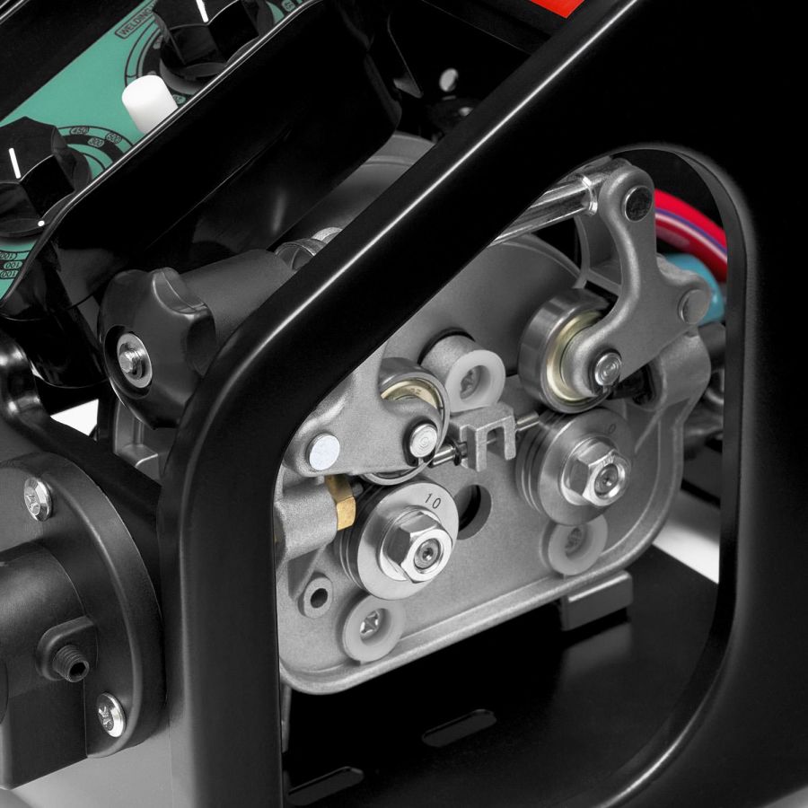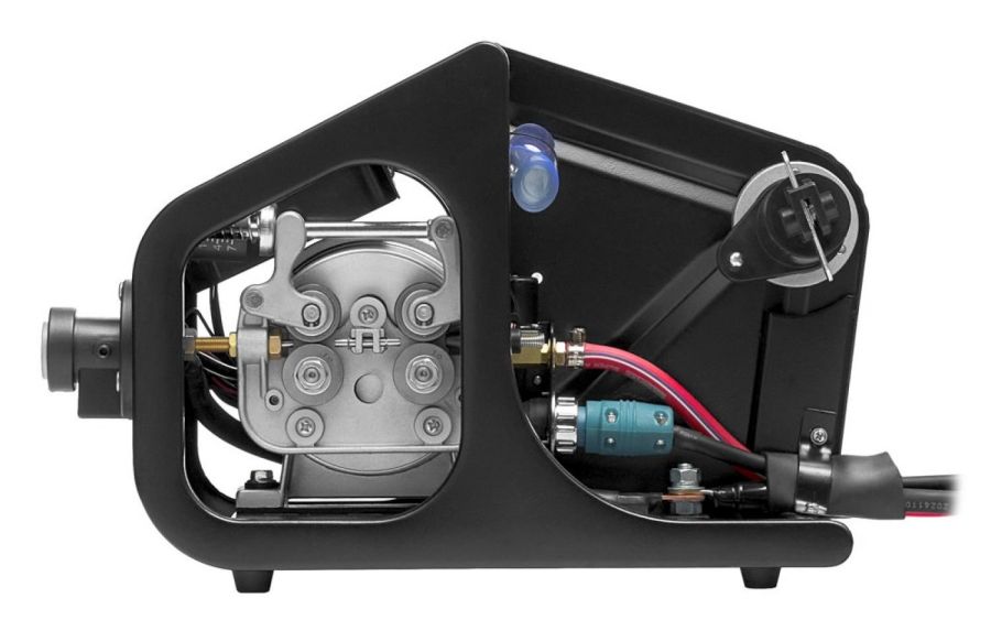 Аппарат оснащен отдельным 4х-роликовым механизмом подачи сварочной проволоки. Четыре приводных ролика гарантируют стабильную и равномерную подачу даже при использовании горелки длиной 5 метров. Открытый тип подающего устройства обеспечивает его легкость и минимальные габаритные размеры, что позволяет работать в самых труднодоступных местах, таких как междудонное пространство судна