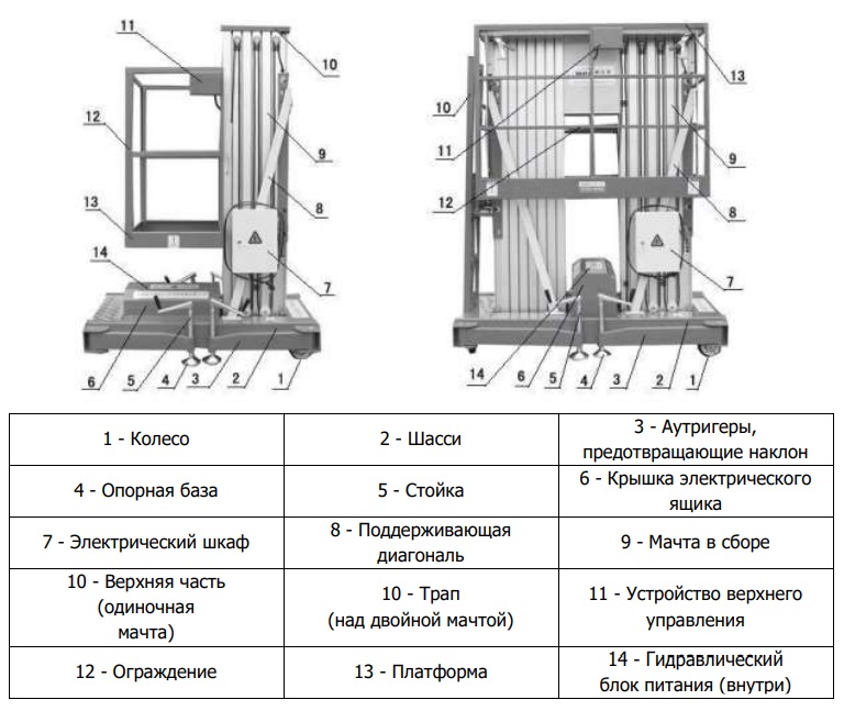 Подъемник мачтовый аккумуляторный 117 кг 9/11 м TOR GTWY9-100 DC
