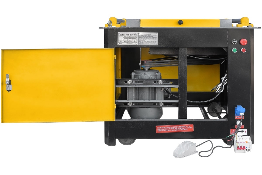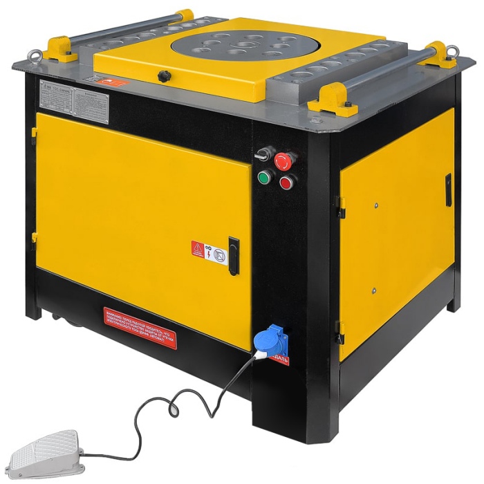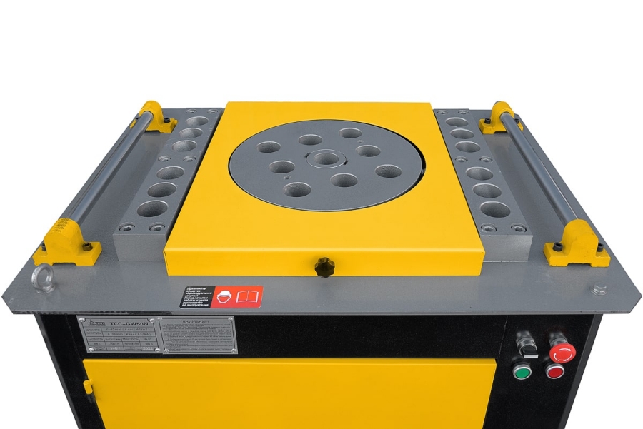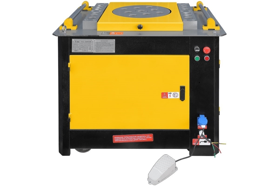 Гибщик арматуры ТСС GW 50N - высокотехнологичное оборудование, которое используется для холодной гибки арматурной стали, сортового проката на строительных площадках, под навесом, на производствах железобетонных и металлических конструкций, таких как дорожные плиты, блоки или панели перекрытий, а также в производственных цехах. Помимо этого, гибщики востребованы непосредственно в строительстве – например, при создании фундаментов будущих зданий. Благодаря использованию гибщиков арматуры удается существенно сократить время производства железобетонных изделий и конструкций, а также снизить трудозатраты. Простота в управлении и легкость регулировки нужного угла изгиба дают возможность быстро перенастроить станок для изготовления очередного вида изделий. Наличие педального и ручного управления способствует удобству работы оператора. Диск сгибания работает в режиме доводчика. Поставляемые модели оснащены всем необходимым и полностью готовы к использованию на предприятиях.