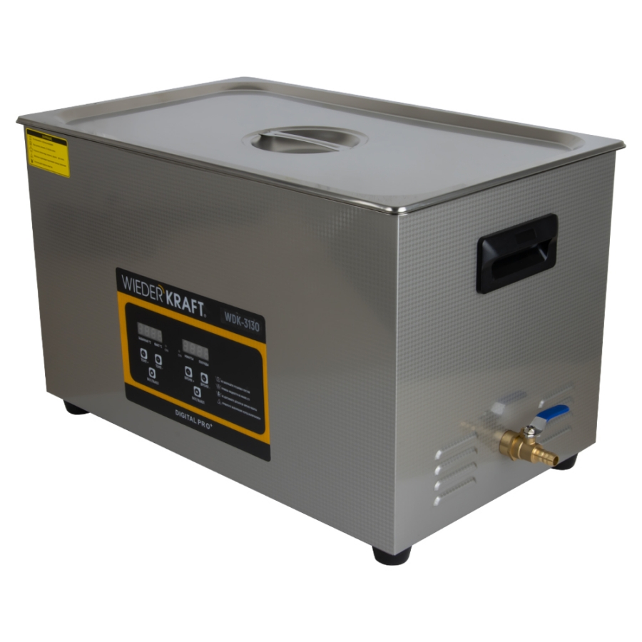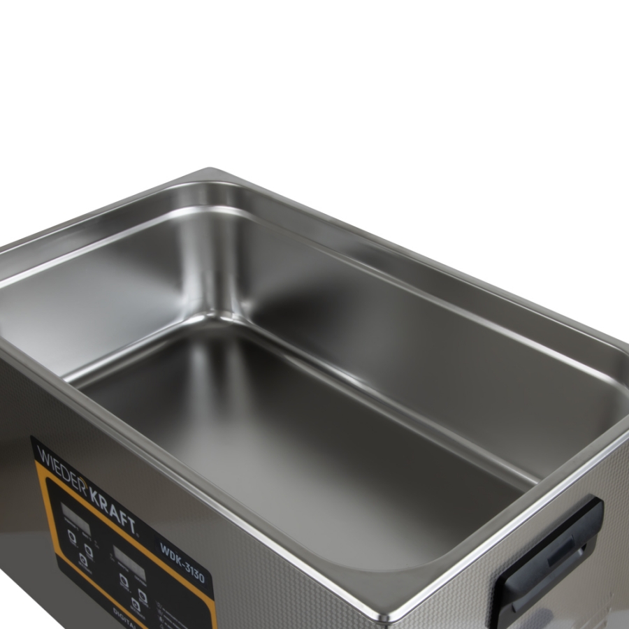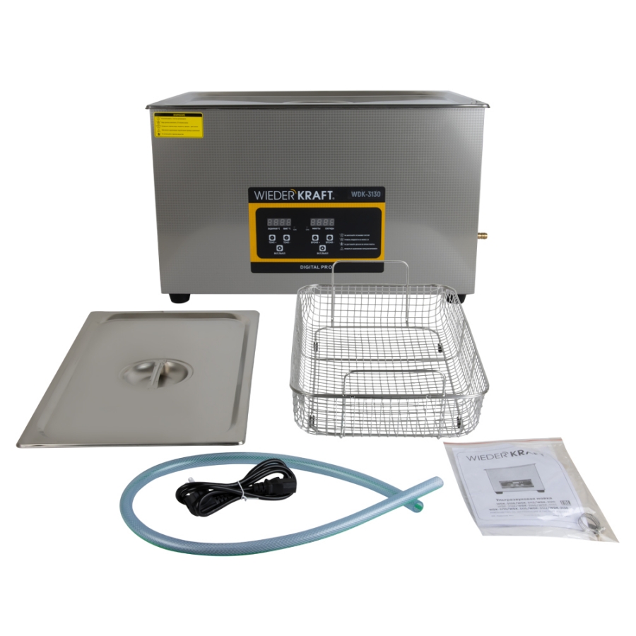 Ультразвуковая ванна с подогревом WiederKraft WDK-3130 объёмом 30 литров, которая предназначена для глубокой и бережной очистки деталей, узлов и инструментов в автосервисах, мастерских и лабораториях. Очистка осуществляется путем воздействия высокочастотных ультразвуковых колебаний в моющем растворе. Ультразвуковая ванна используется в качестве вспомогательного устройства для очистки деталей при ремонте и реставрации. Модель WDK-3130 оснащена подогревом до 80°C, что значительно повышает эффективность при удалении жировых и масляных загрязнений. Функция дегазации и режим полуволны обеспечивают стабильность кавитации и позволяют очищать как массивные детали, так и деликатные изделия. А удобная цифровая панель управления даёт возможность точно настроить время (от 0 секунд до 30 минут) и температуру нагрева.