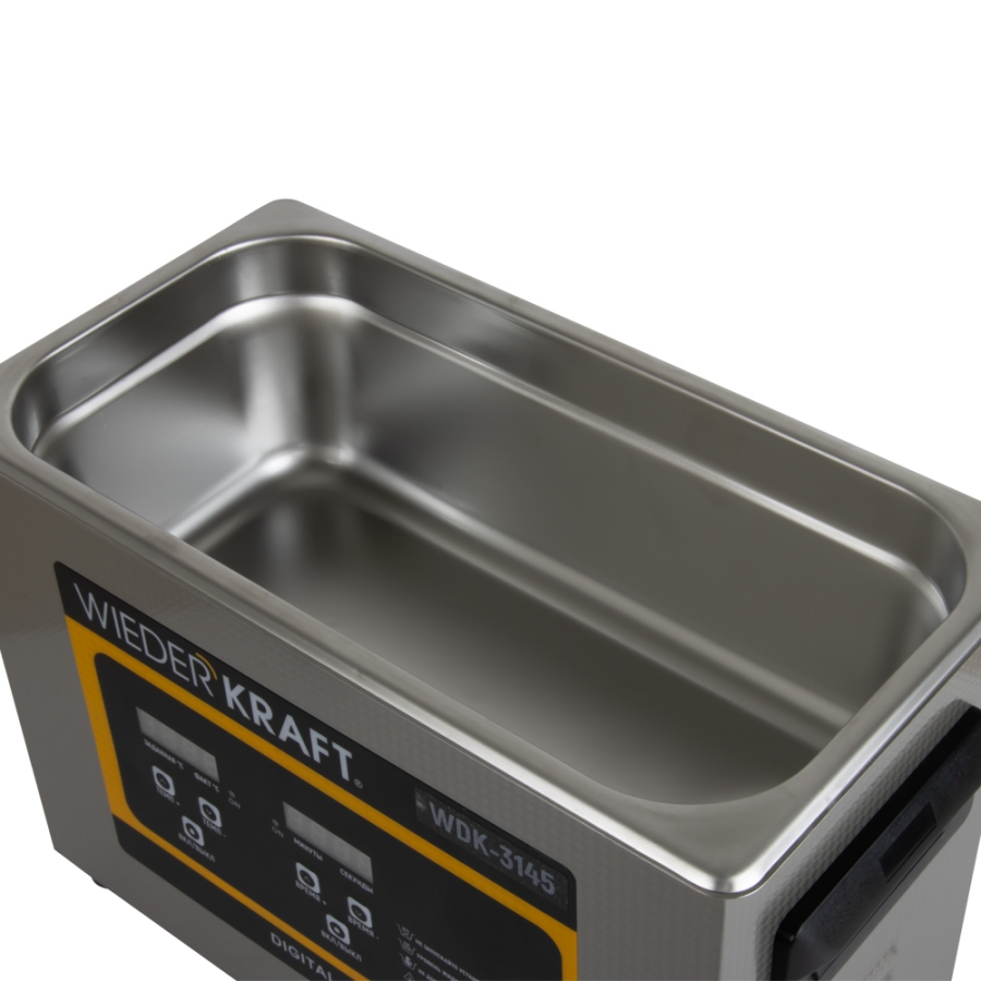 Ультразвуковая ванна с подогревом WiederKraft WDK-3145 объемом 4,5 литра, которая предназначена для очистки различных деталей, узлов и механизмов от загрязнений. Очистка осуществляется путем воздействия высокочастотных ультразвуковых колебаний в моющем растворе. Ванна используется в качестве вспомогательного устройства для очистки деталей при ремонте и реставрации. Модель WDK-3145 оснащена подогревом от 0 до 80°C, что значительно повышает эффективность при удалении жировых и масляных загрязнений. Удобная цифровая панель управления даёт возможность точно настроить время (от 0 секунд до 30 минут) и температуру нагрева.