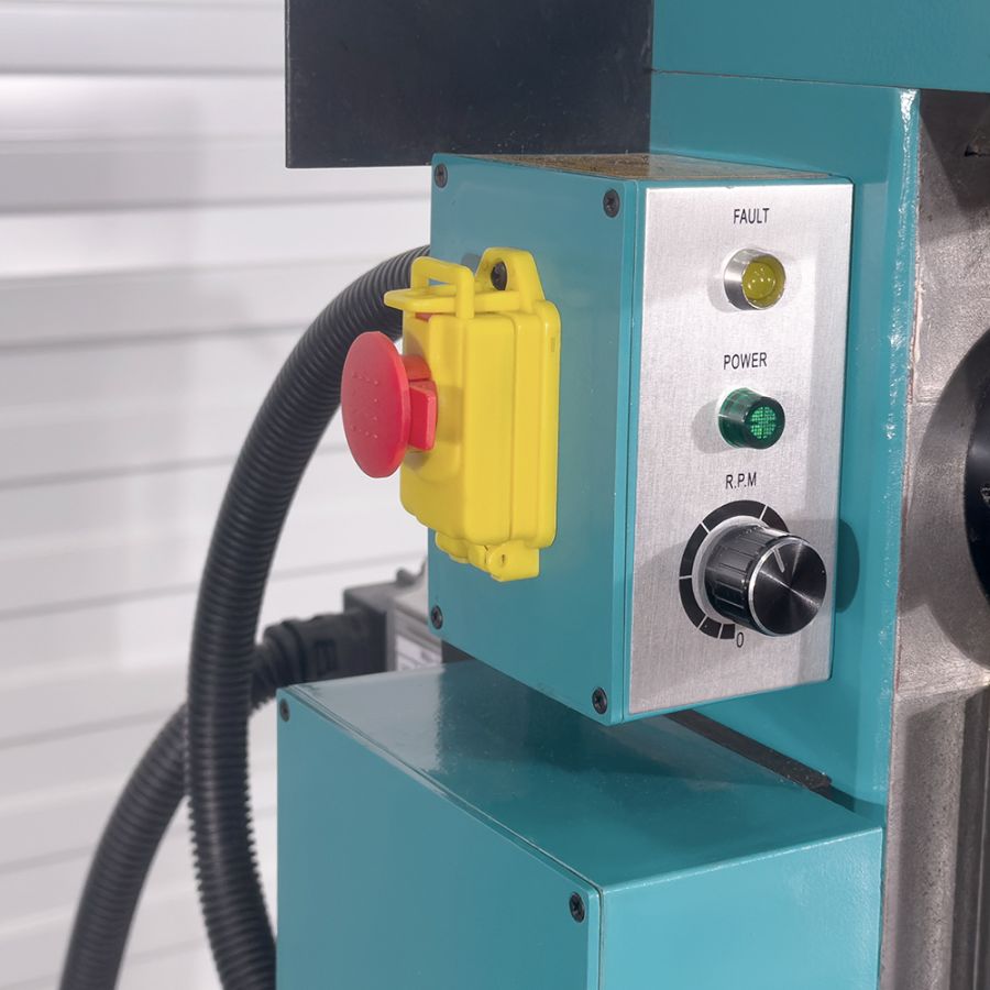 Безопасность работы на станке обеспечивается блоком электронной защиты двигателя, наличием кнопки аварийного отключения и прозрачным защитным экраном.