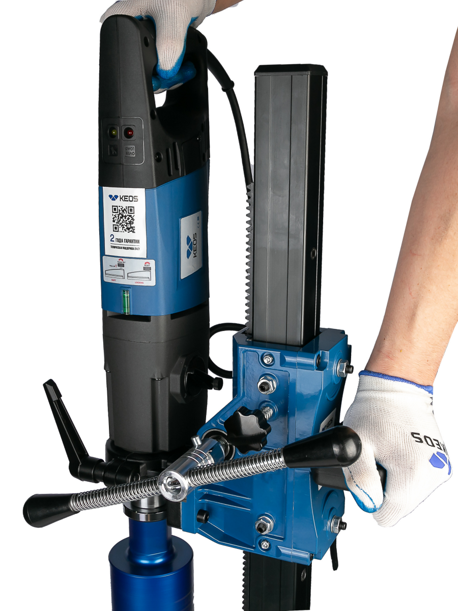 Установка алмазного бурения KEOS KS-180 с функцией микроудара применяется для сухого сверления отверстий в бетоне, асфальте и кирпиче диаметром до 160 мм. Установка состоит из двигателя KEOS KS-180 и станины Keos S-250. Мощность двигателя 1,9 кВт, работает от сети 220В. Максимальные обороты двигателя 1700 об/мин. Мотор оборудован быстросъемной муфтой для подключения пылесоса, а так же водяной муфтой для сверления с подачей воды. Для защиты при заклинивании коронки, редуктор двигателя оснащен предохранительной муфтой. Набор для проведения ТО входит в комплект поставки.
