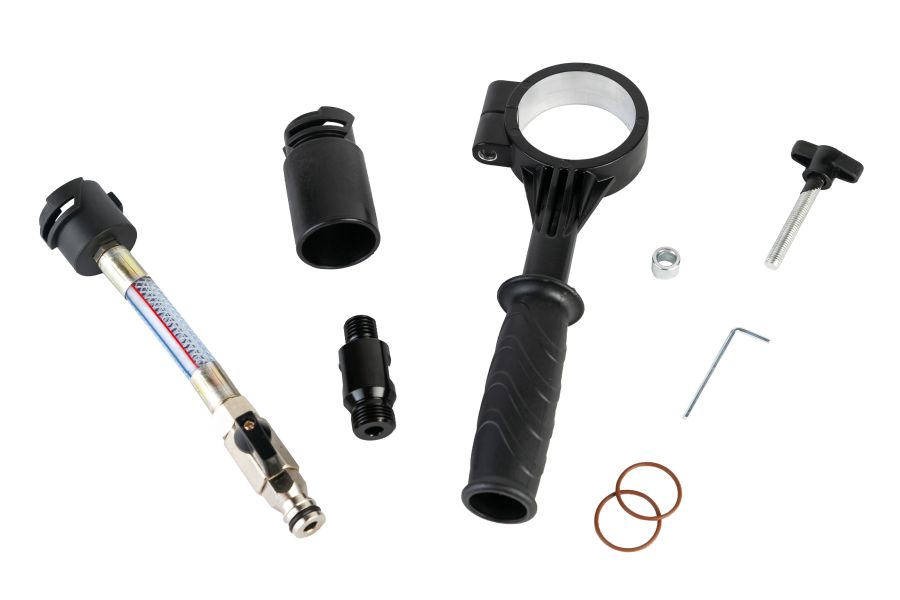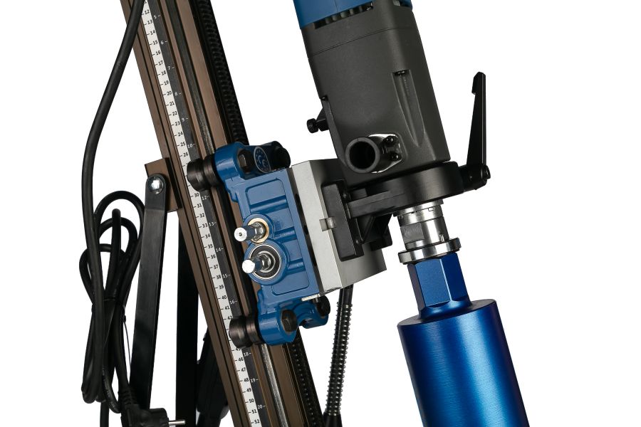 Дрель оснащена быстросъемной муфтой для подключения пылесоса, а также водяной муфтой для сверления с подачей жидкости.