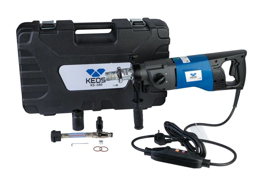 KS-180JSET комплект KEOS KS-180 (мотор KS-180 + наклонный штатив KS-250J) предназначен для сухого и мокрого сверления отверстий в бетоне, асфальте и кирпиче.