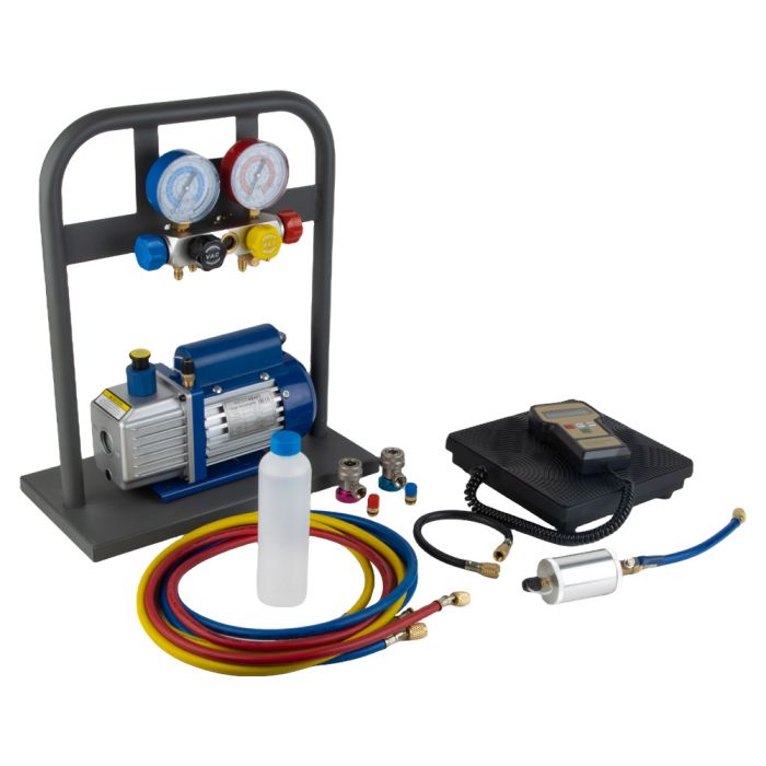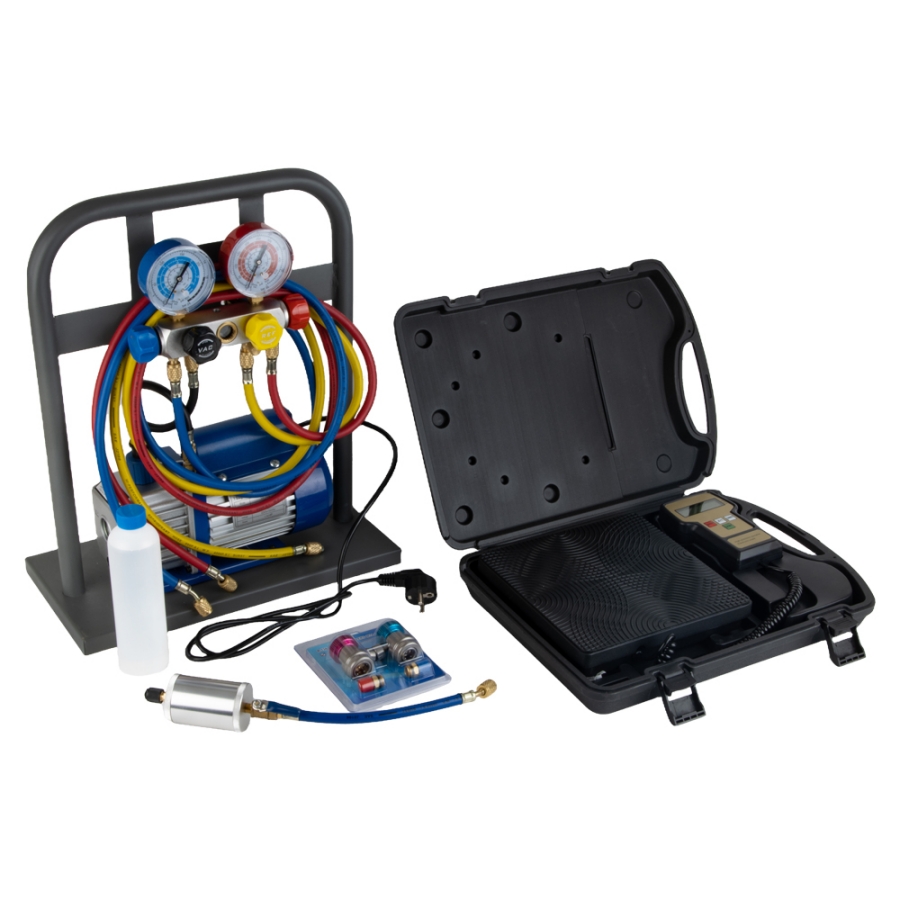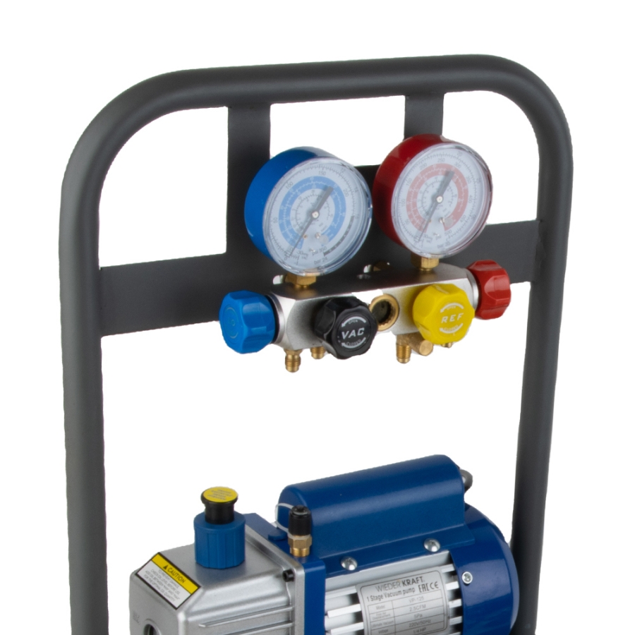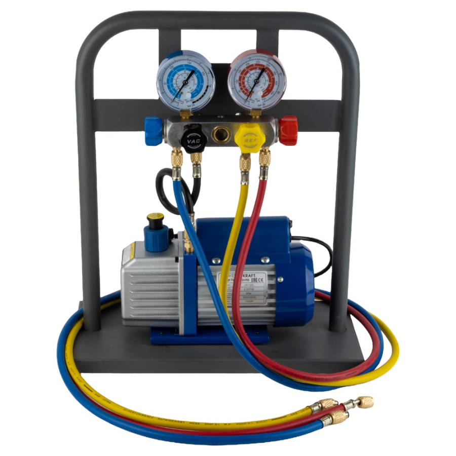Вакуумный насос (60 л/мин) с глубиной вакуума до 60 микрон позволяет эффективно удаляет воздух и влагу из системы перед заправкой;